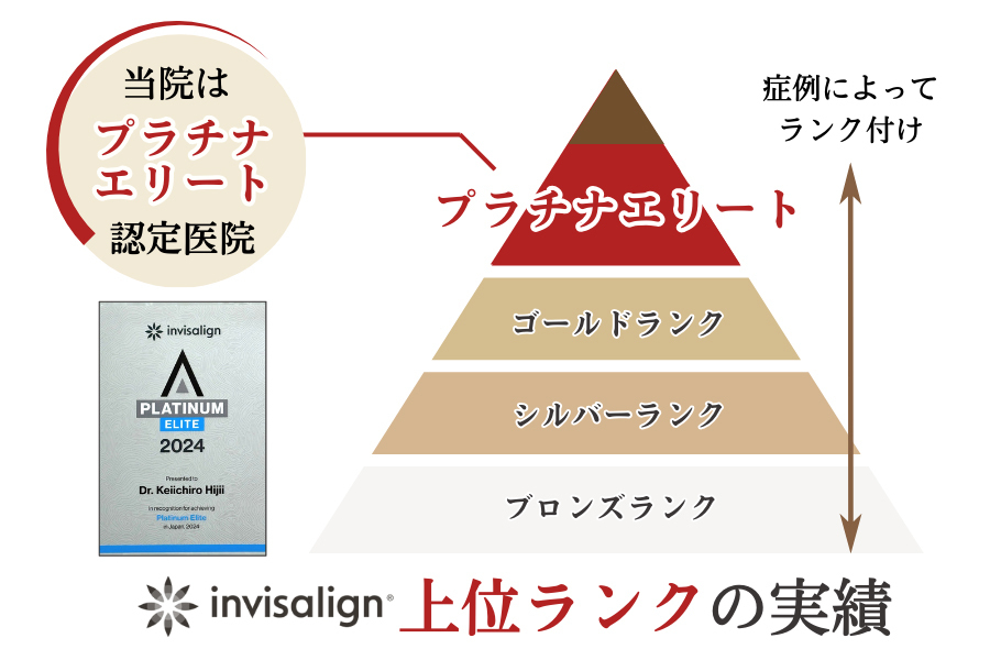 その点、当院の院長は、矯正治療の経験を20年以上持ち、「インビザライン・プラチナエリートプロバイダー」に認定されたマウスピース矯正のプロフェッショナル。